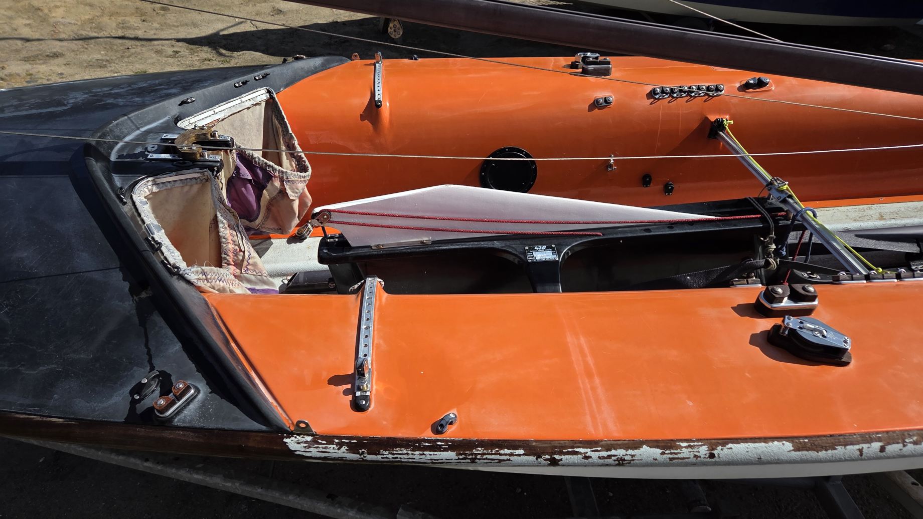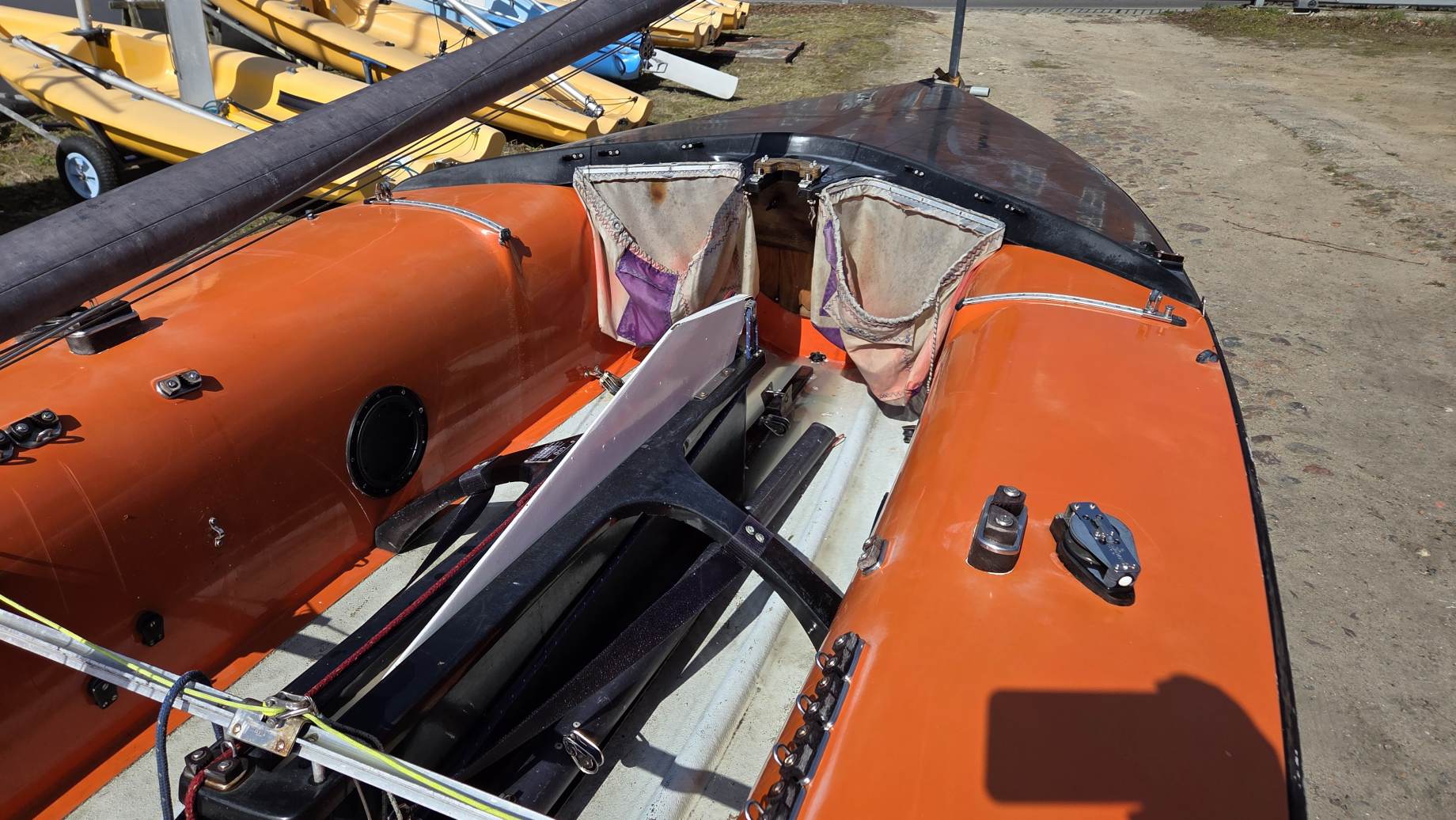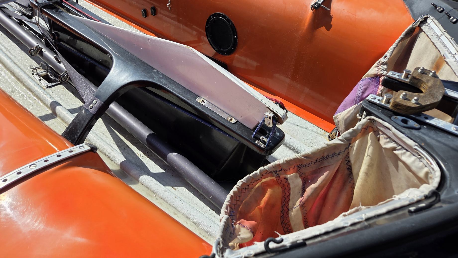 Kadłub w średnim stanie, bardzo sztywny, góra w oryginalnym żelkocie (miejscami wypłowiały od słońca).