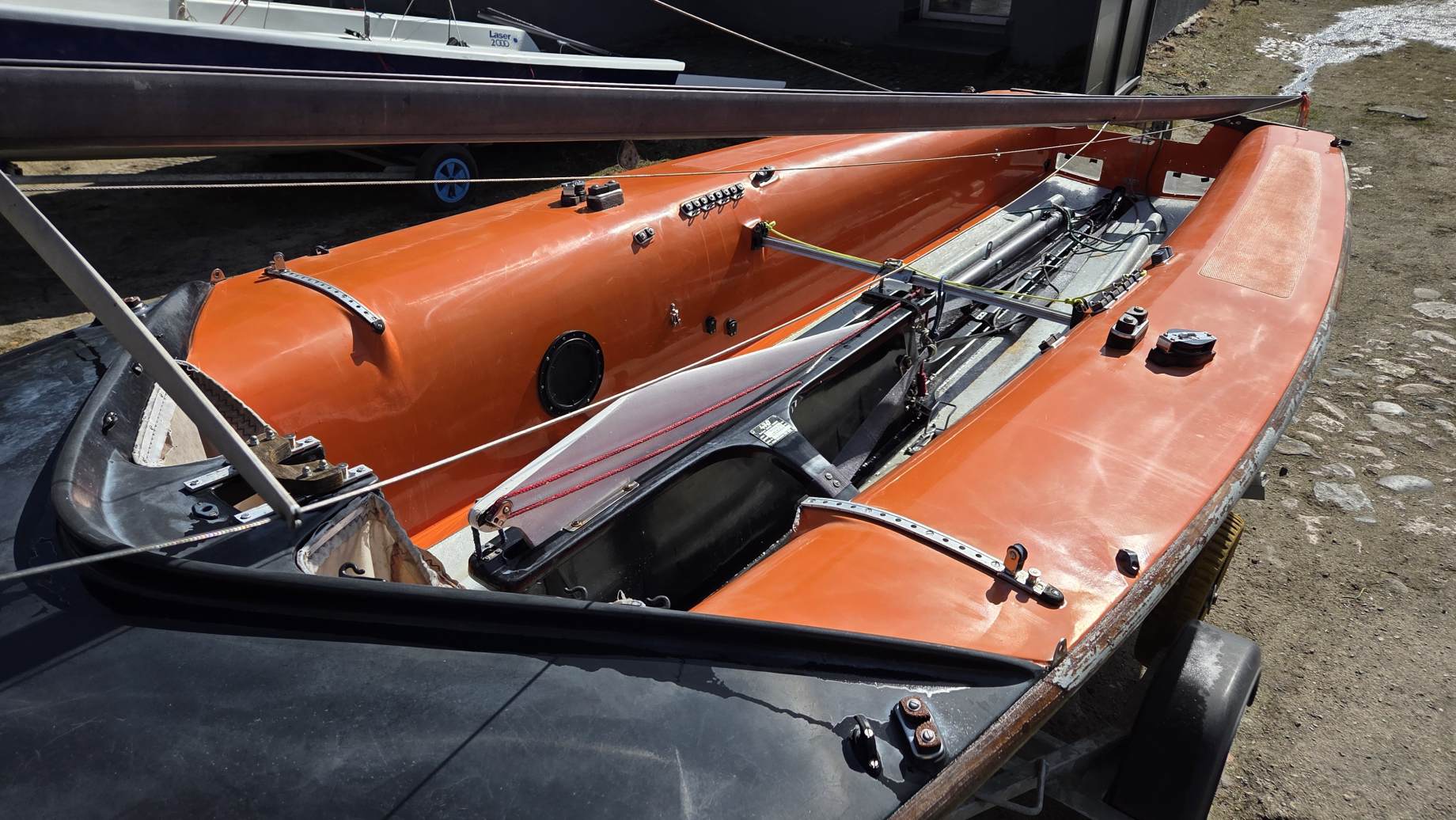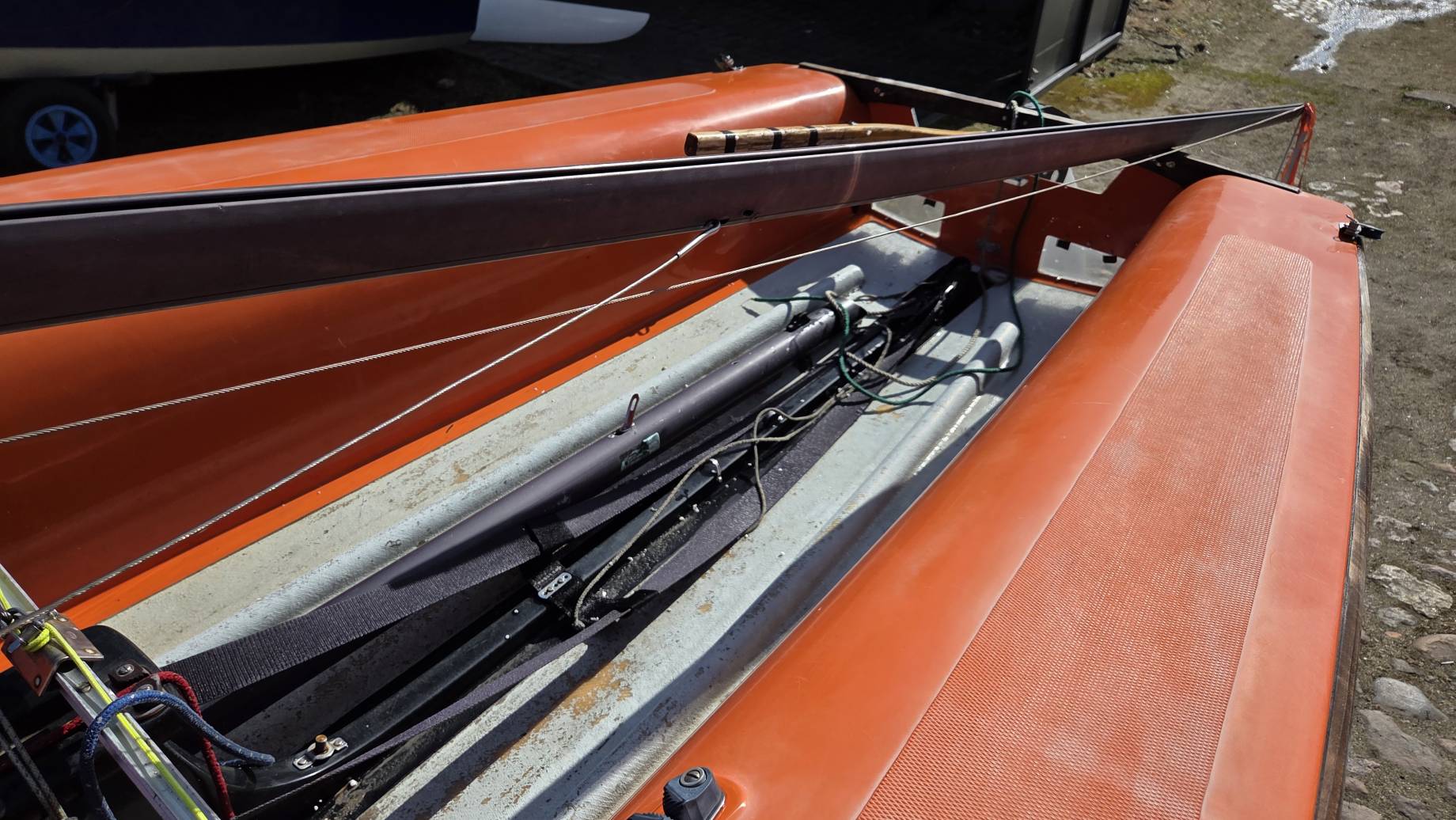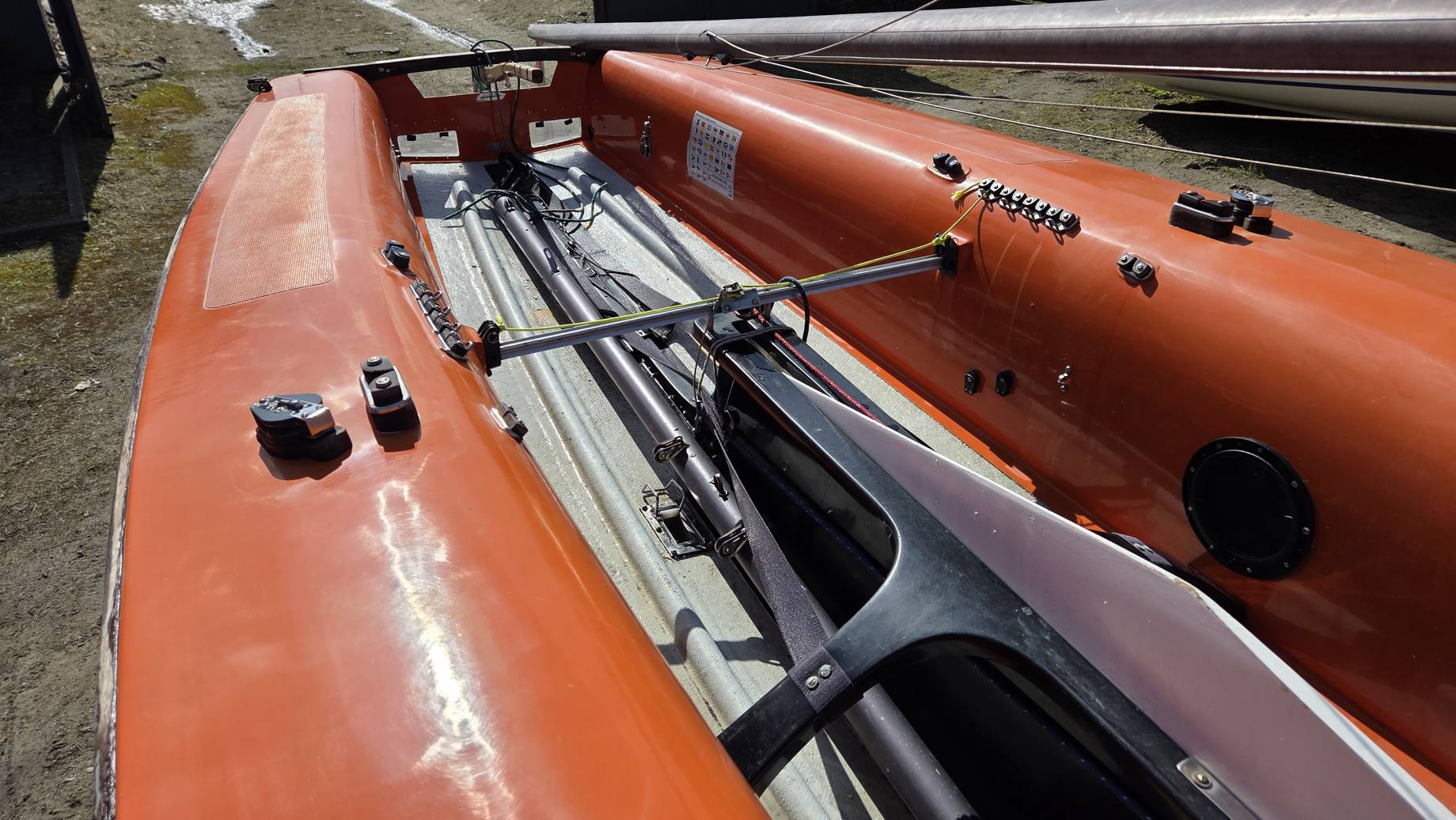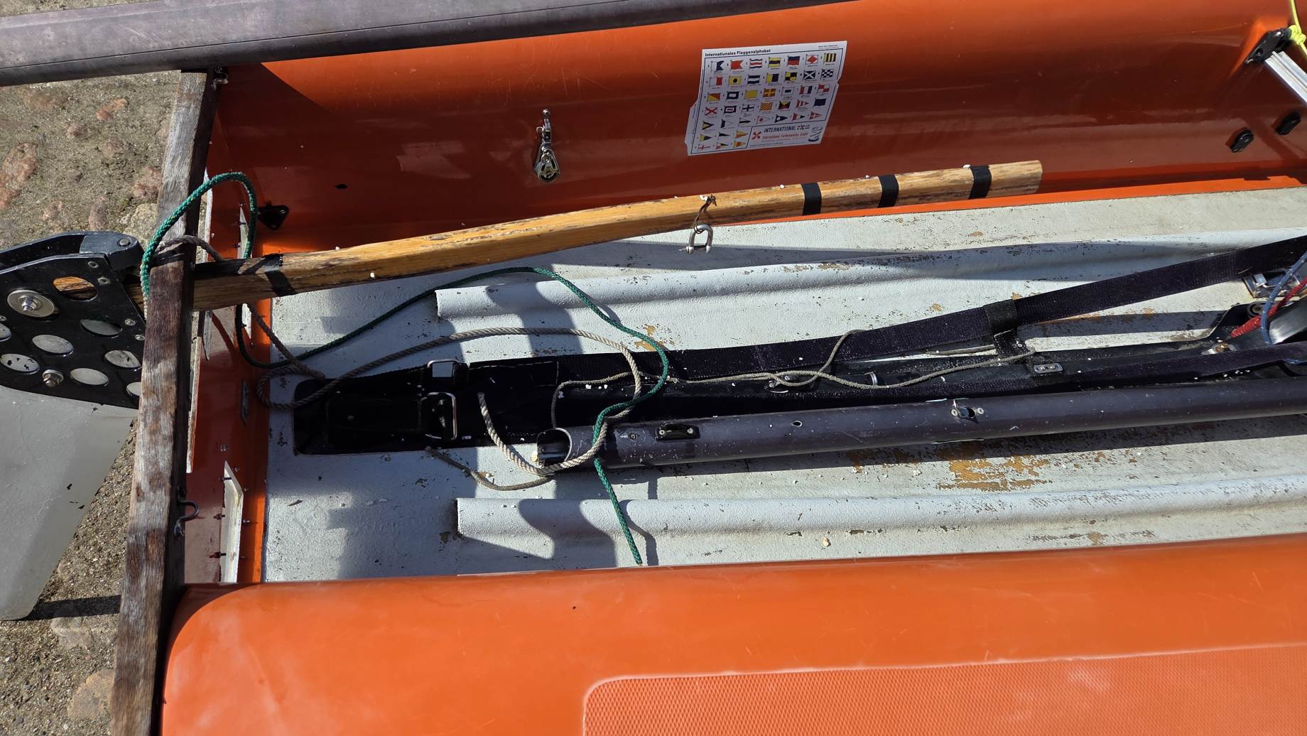 Kadłub w średnim stanie, bardzo sztywny, góra w oryginalnym żelkocie (miejscami wypłowiały od słońca).