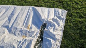Stan średni, posiada uszkodzenie przy listwie widoczne na zdjęciach.