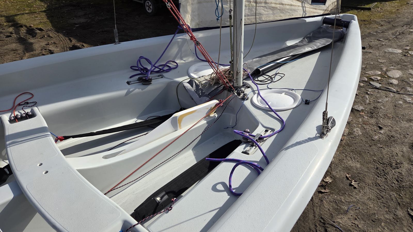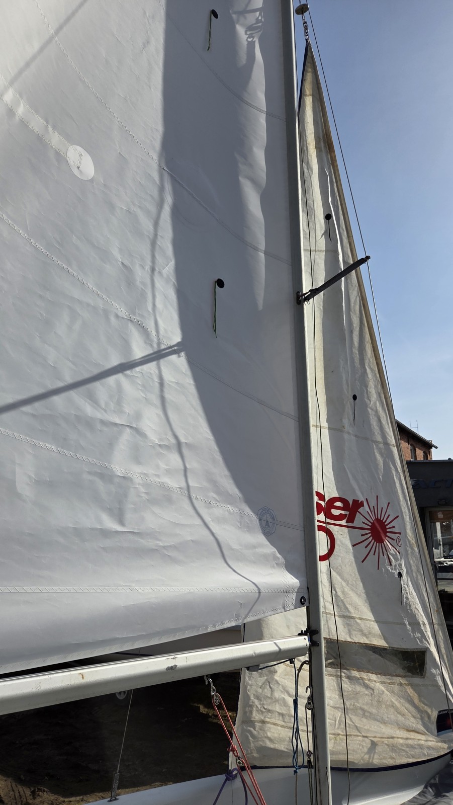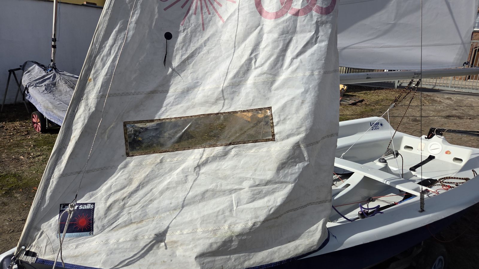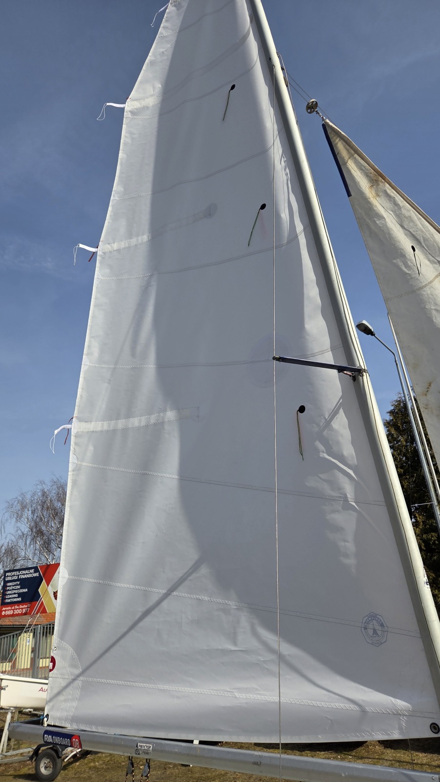 Komplet żagli grot dakron + fok dakron (11,70m2) oraz spinaker (10,12m2). Grot nowy, nigdy nie używany!