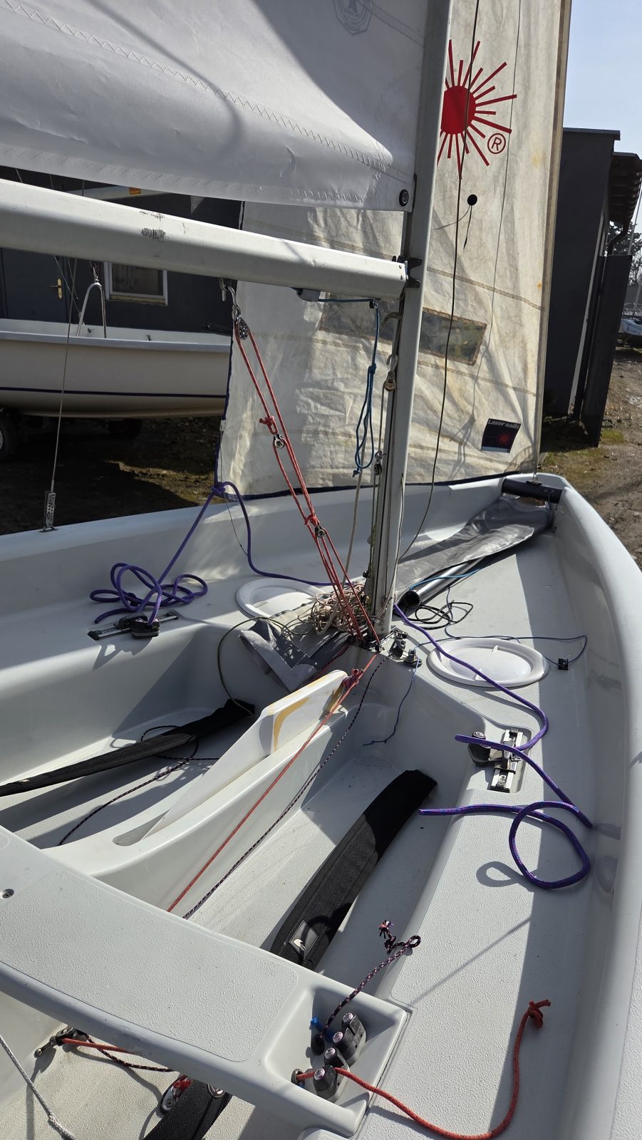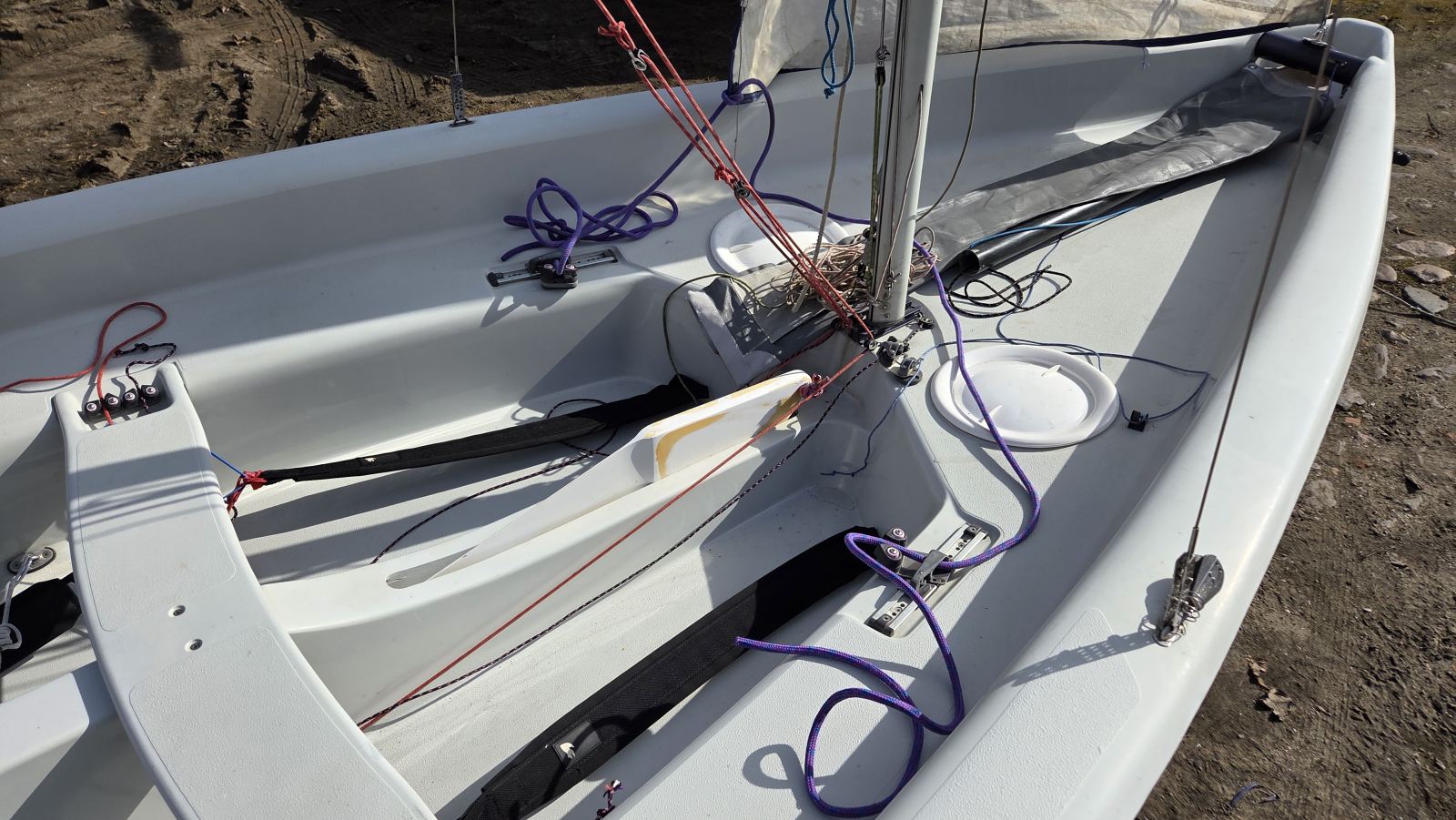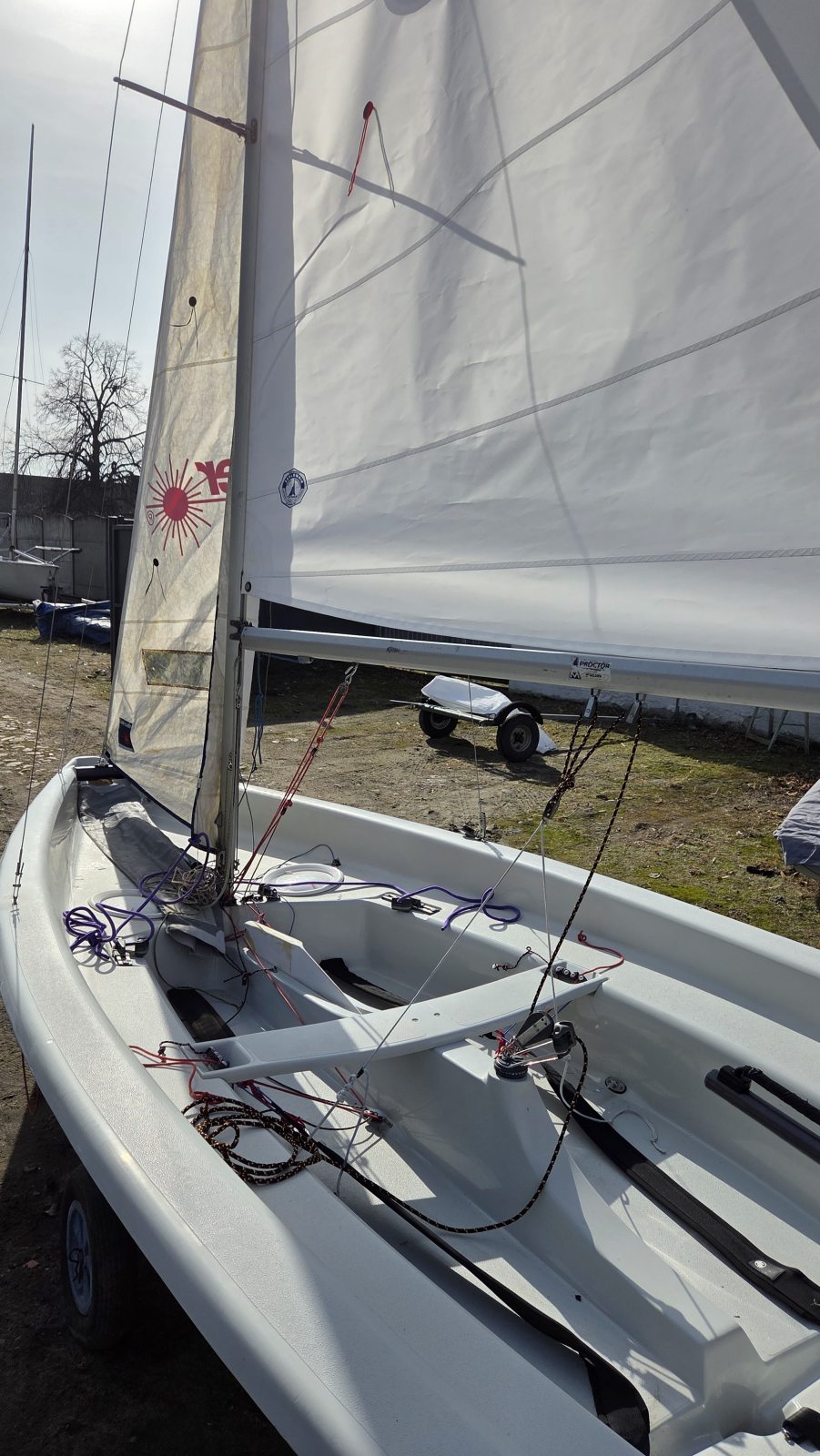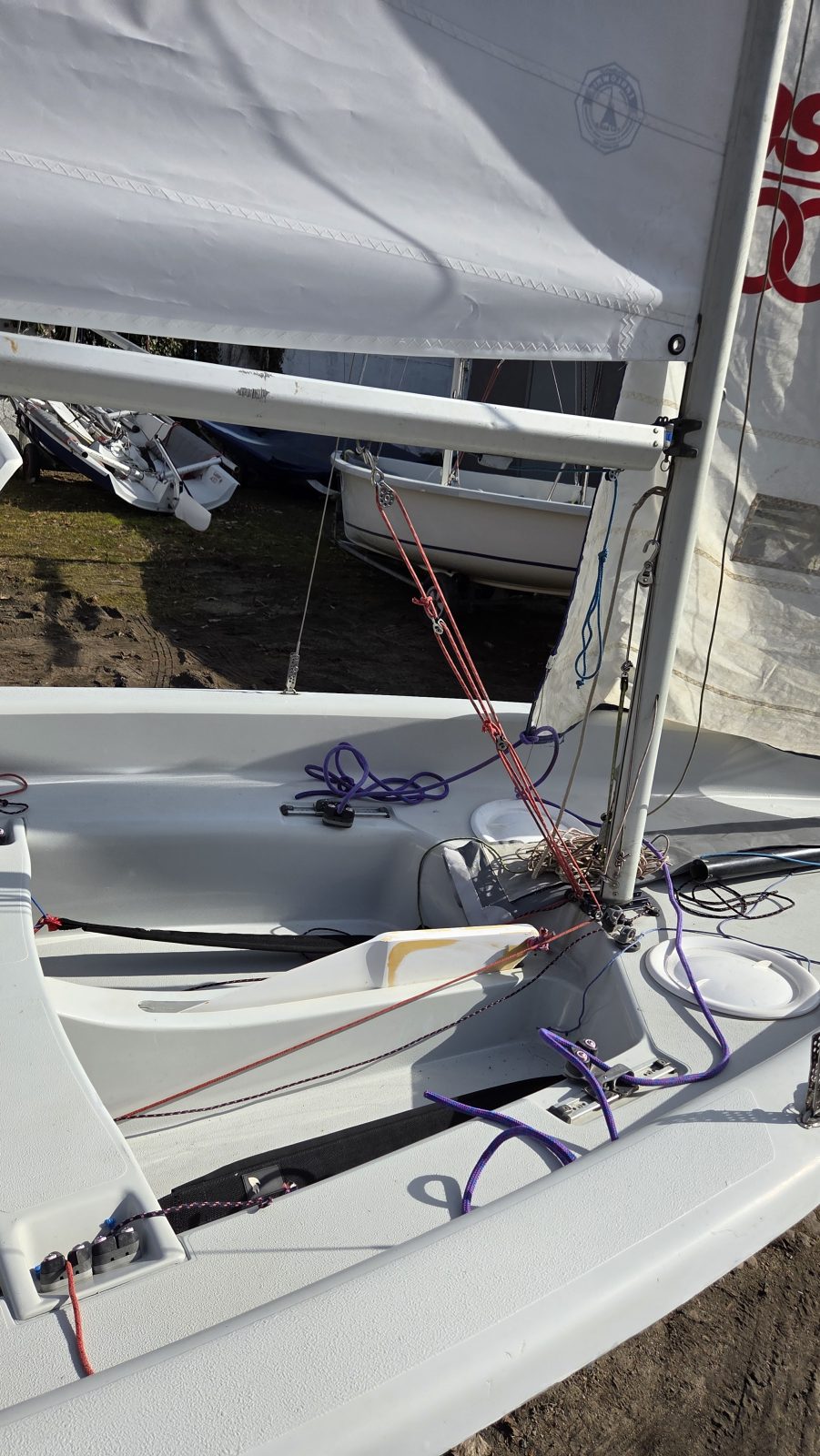 Komplet żagli grot dakron + fok dakron (11,70m2) oraz spinaker (10,12m2). Grot nowy, nigdy nie używany!
