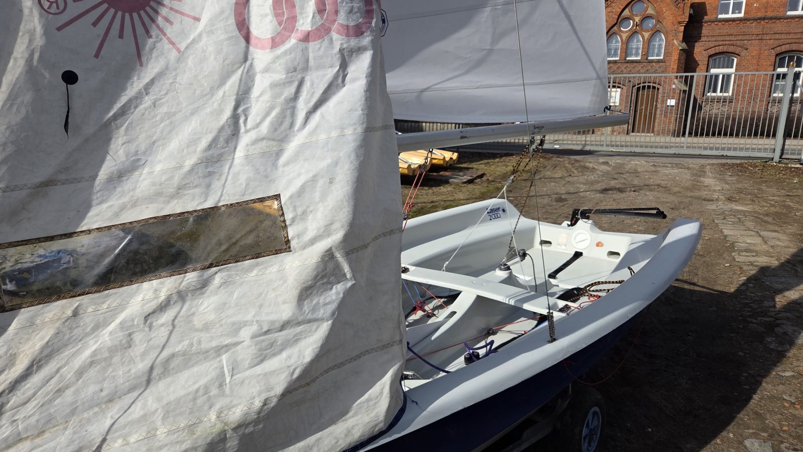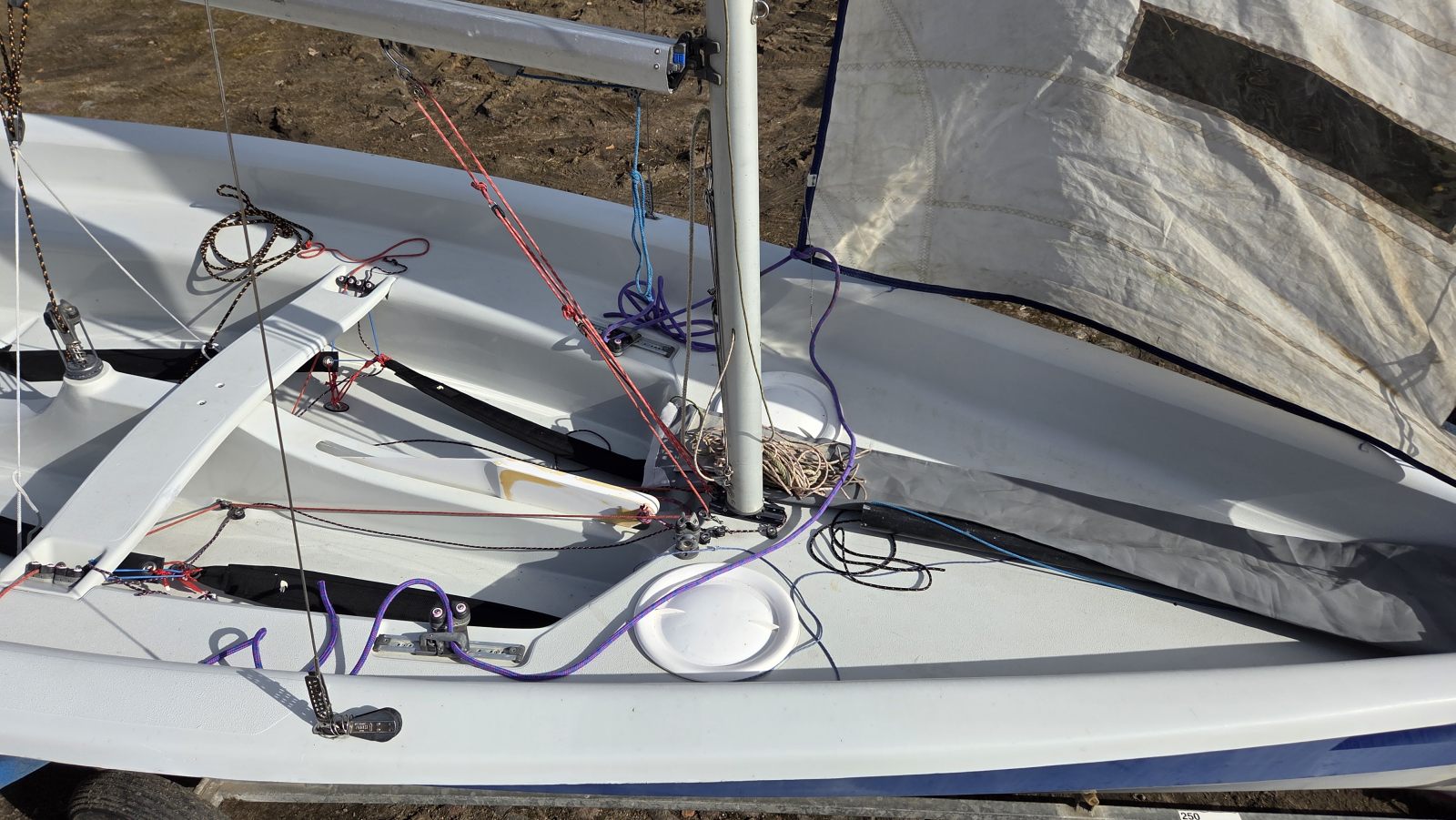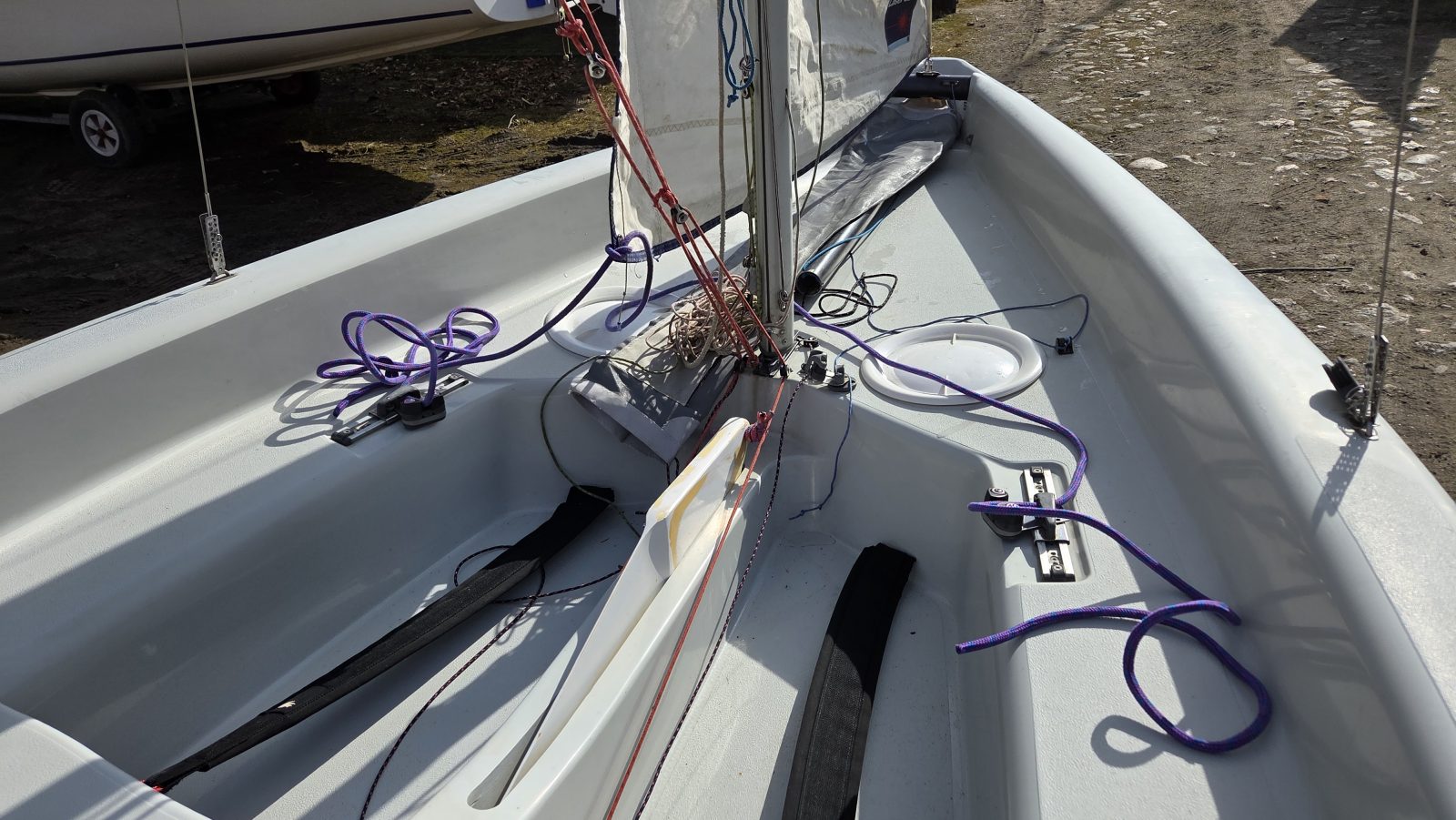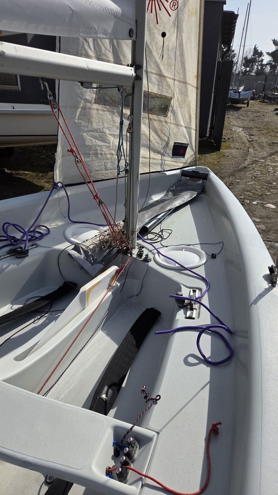 Komplet żagli grot dakron + fok dakron (11,70m2) oraz spinaker (10,12m2). Grot nowy, nigdy nie używany!