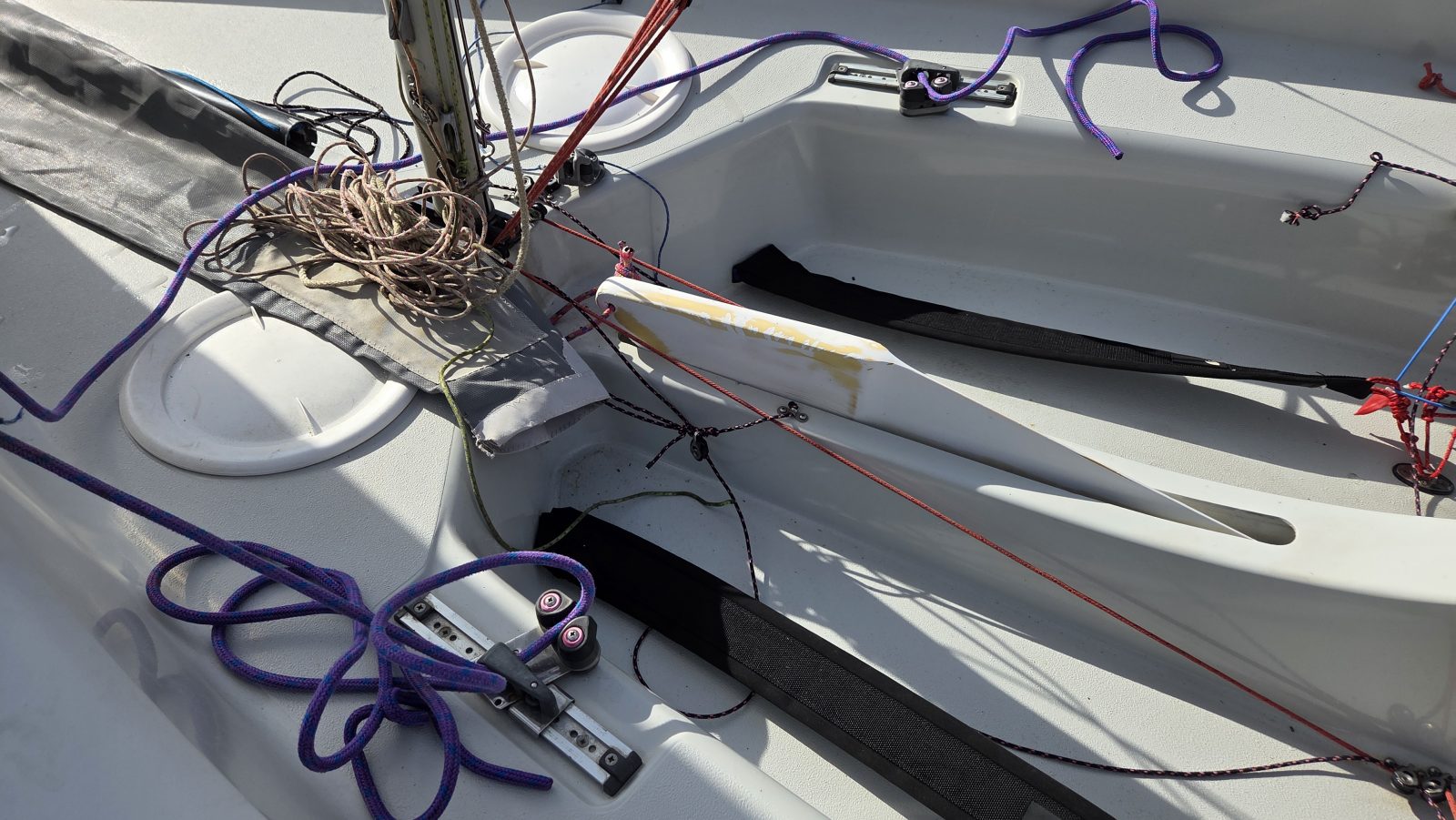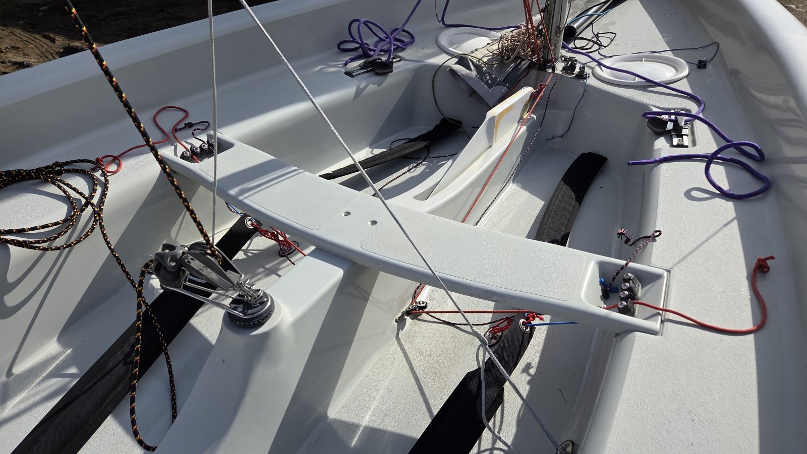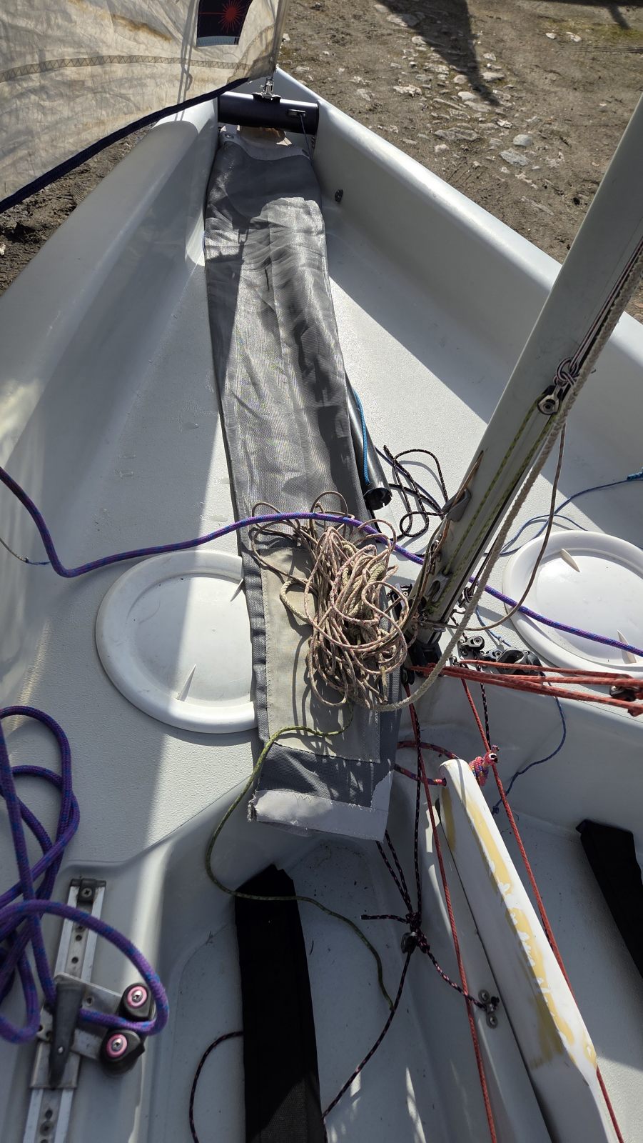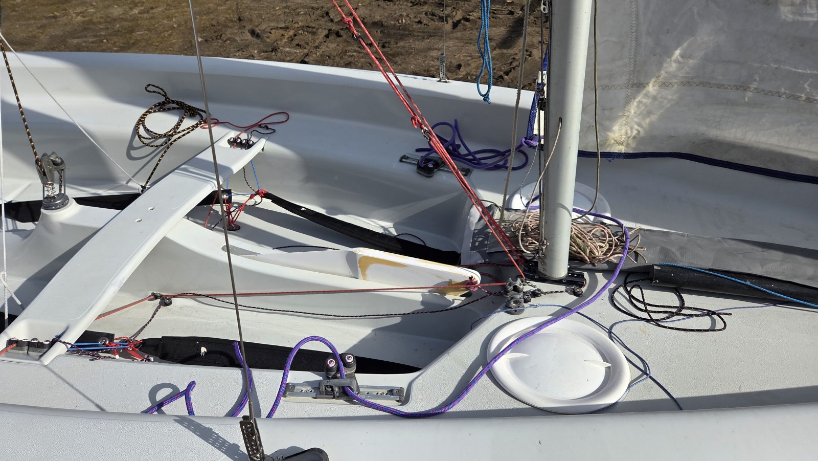 Komplet żagli grot dakron + fok dakron (11,70m2) oraz spinaker (10,12m2). Grot nowy, nigdy nie używany!