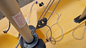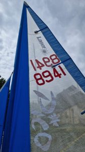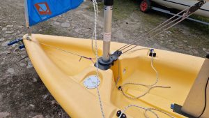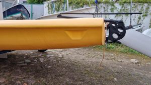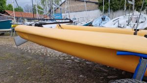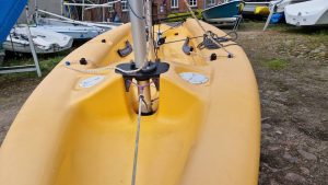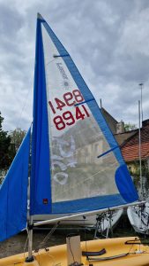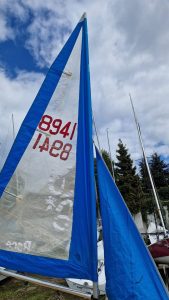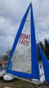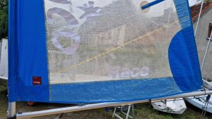 W komplecie grot mylarowy w większej wersji RACE (6,44m2) oraz fok dakronowy (1,1m2).