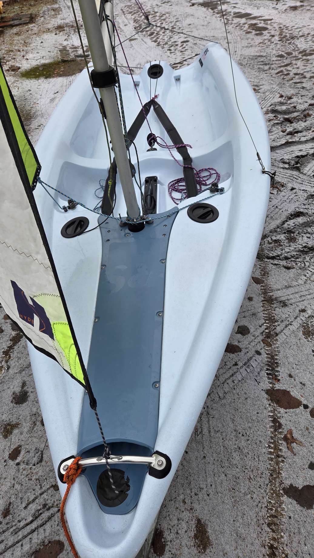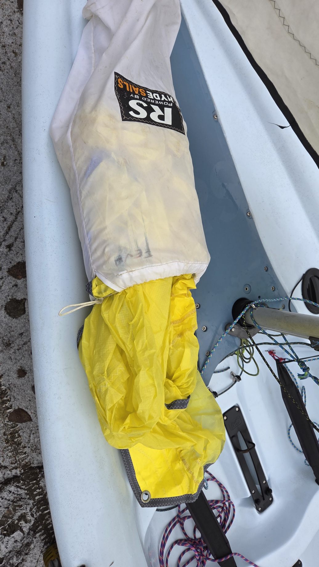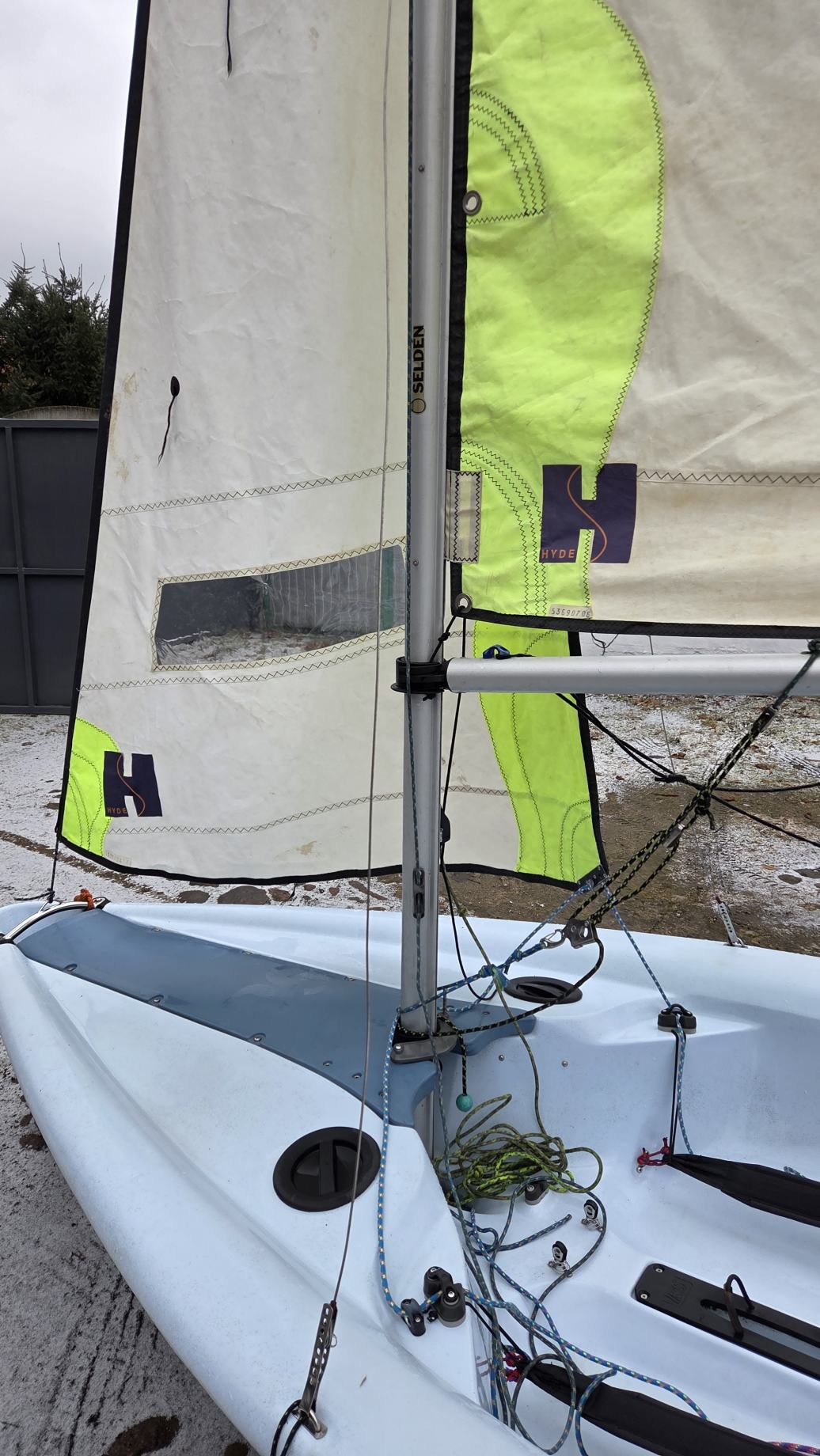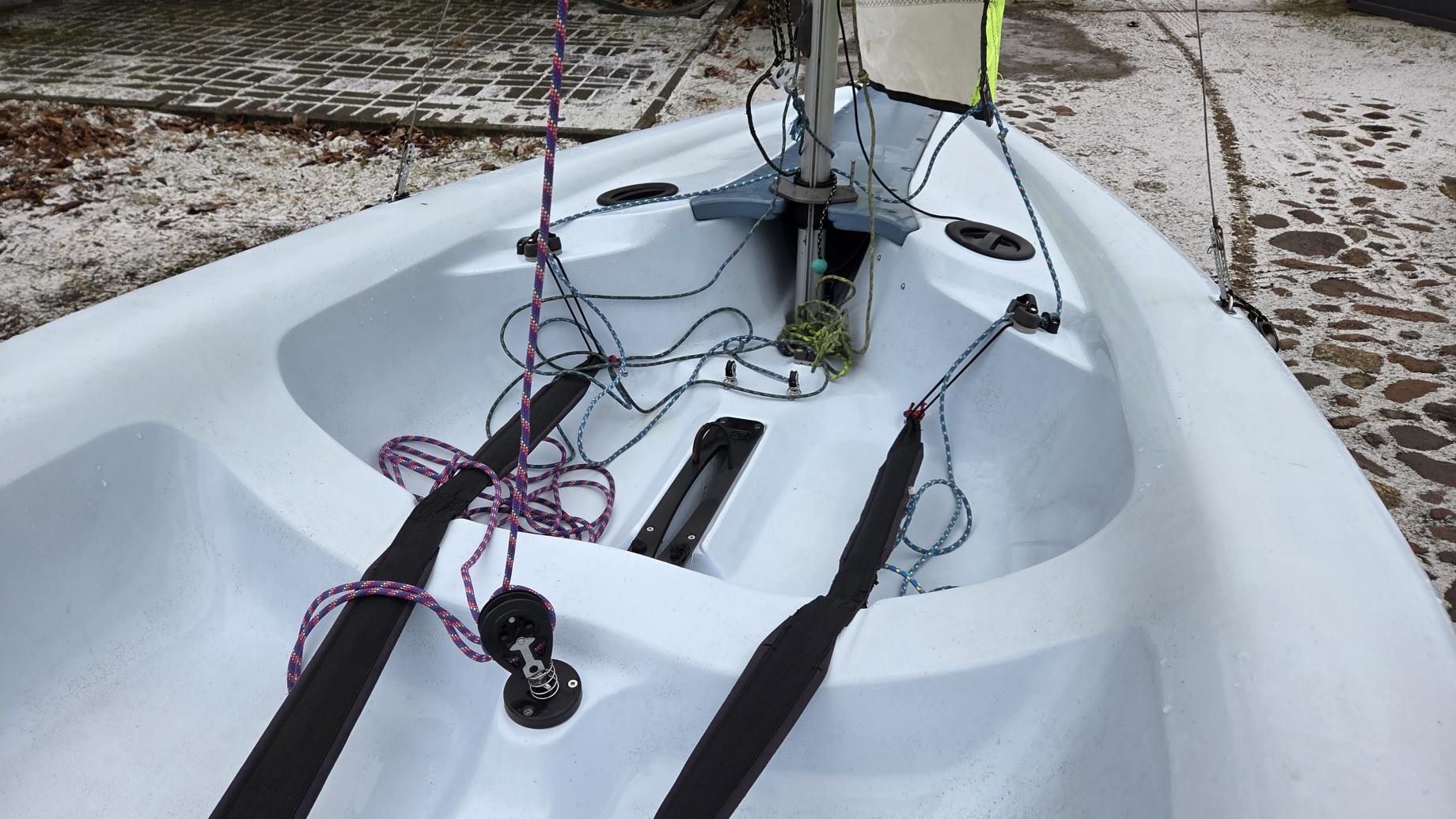 W komplecie dakronowy grot (5,5m2) + fok (2,1m2) oraz genaker (7m2). Możliwość zakupu z grotem mylarowym.