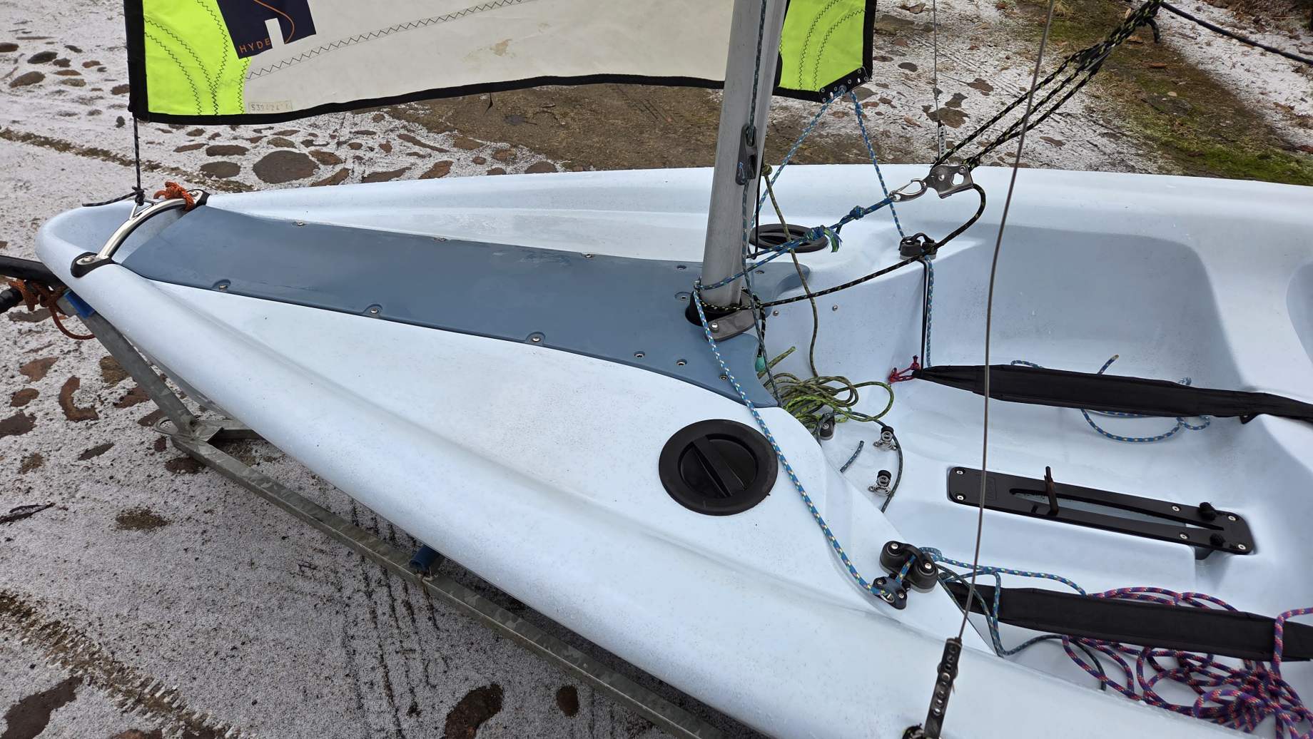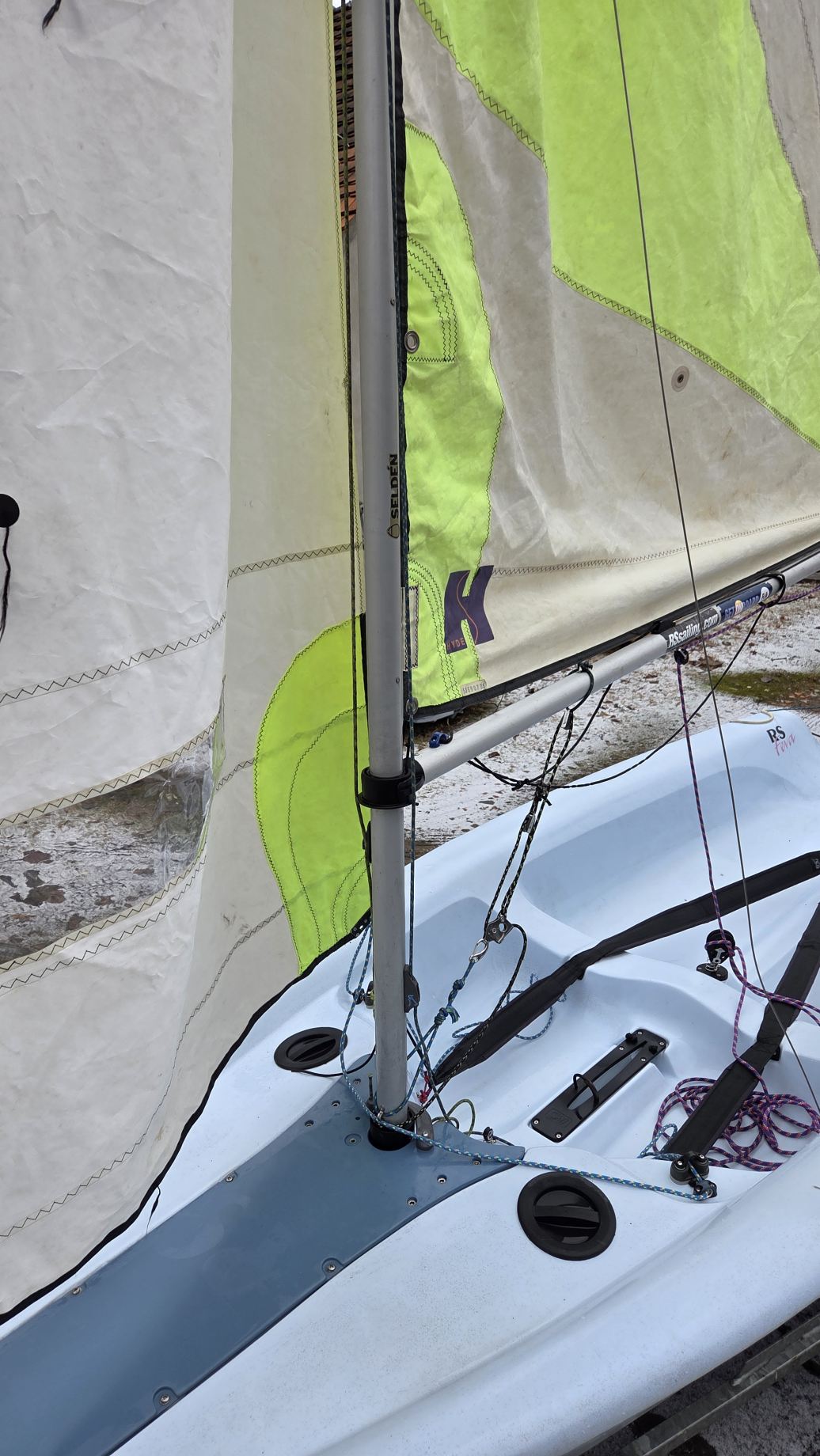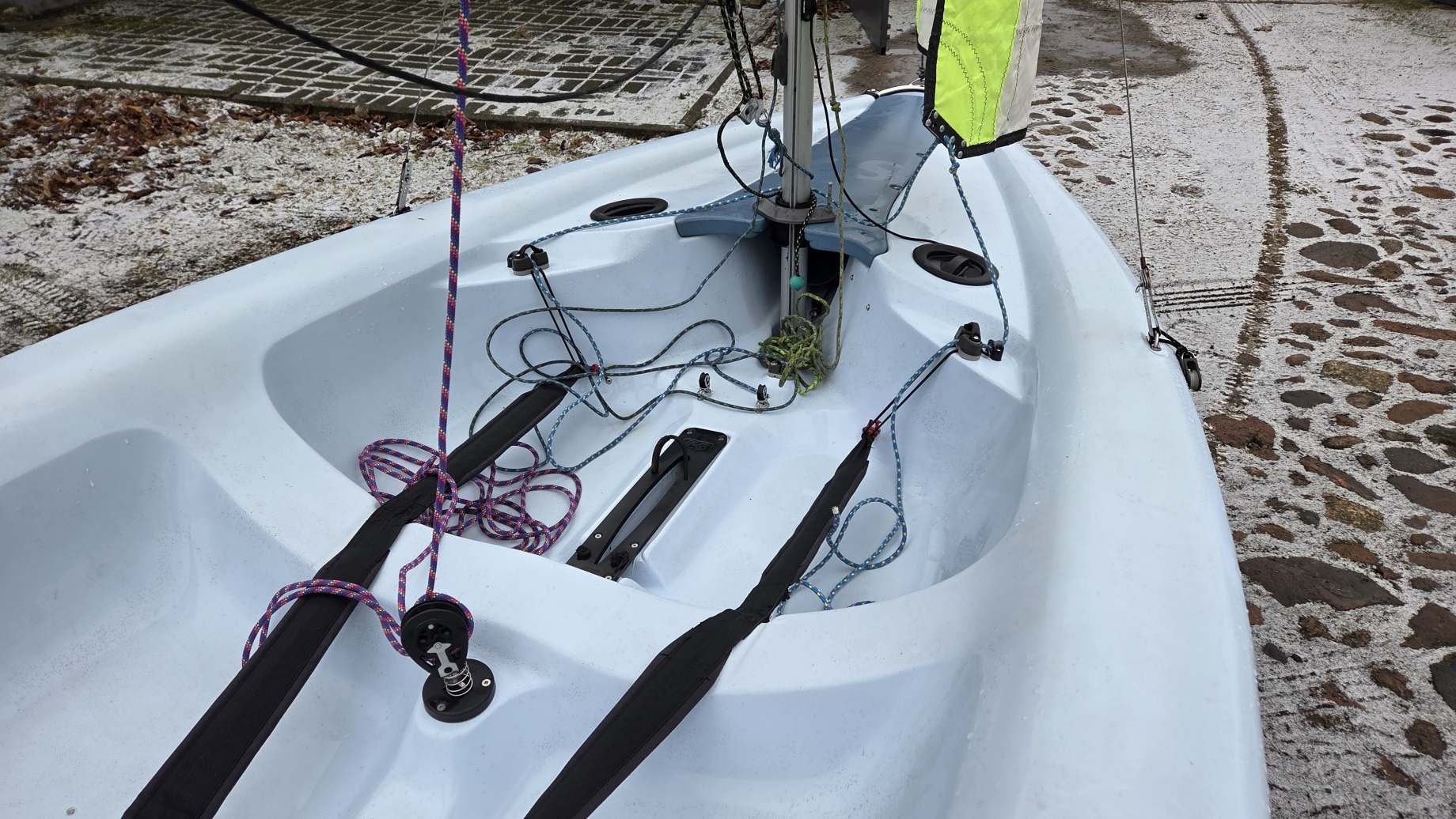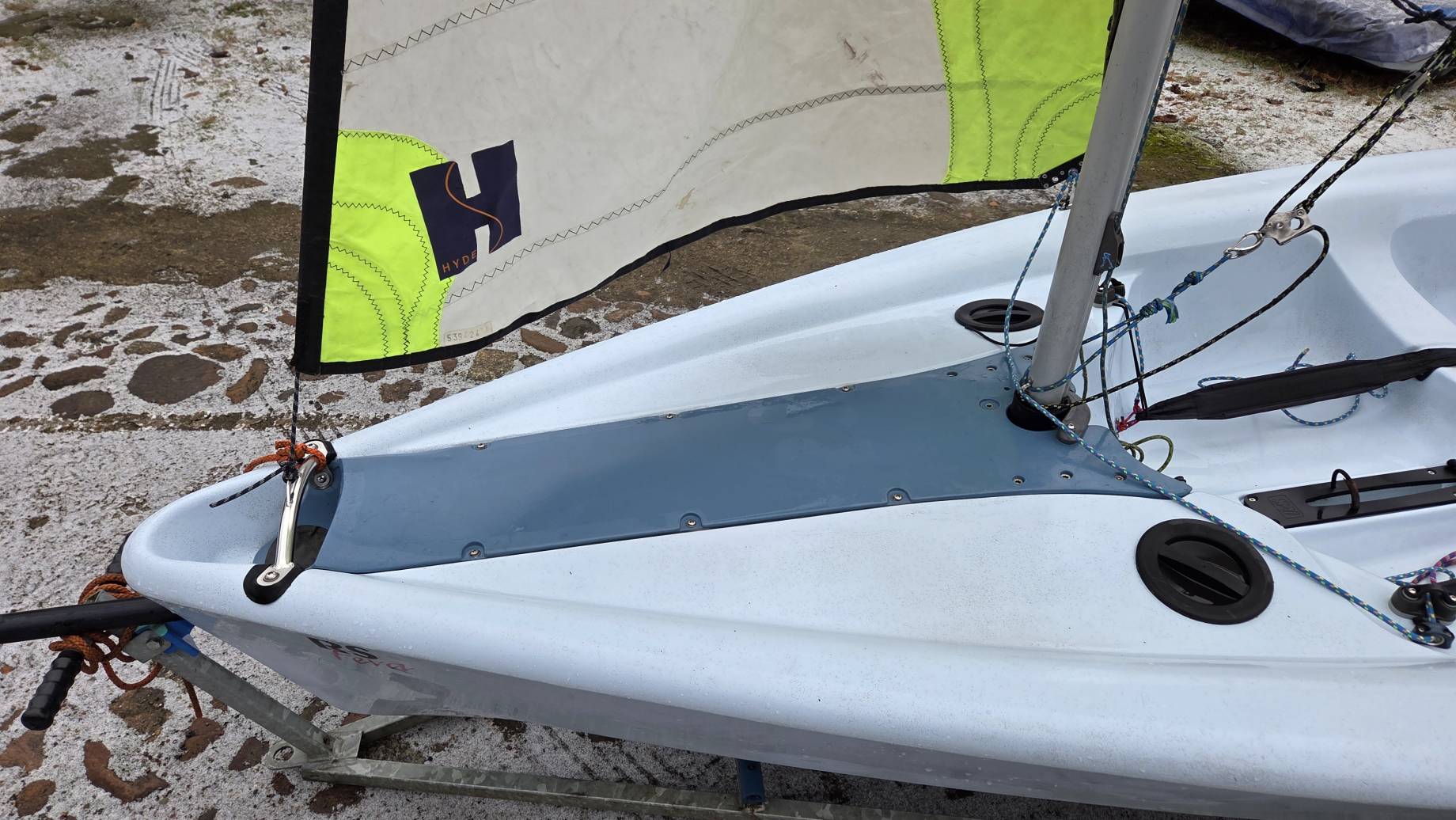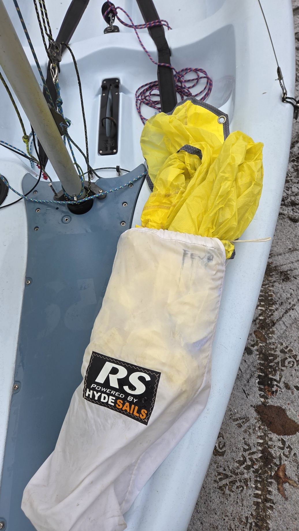 W komplecie dakronowy grot (5,5m2) + fok (2,1m2) oraz genaker (7m2). Możliwość zakupu z grotem mylarowym.