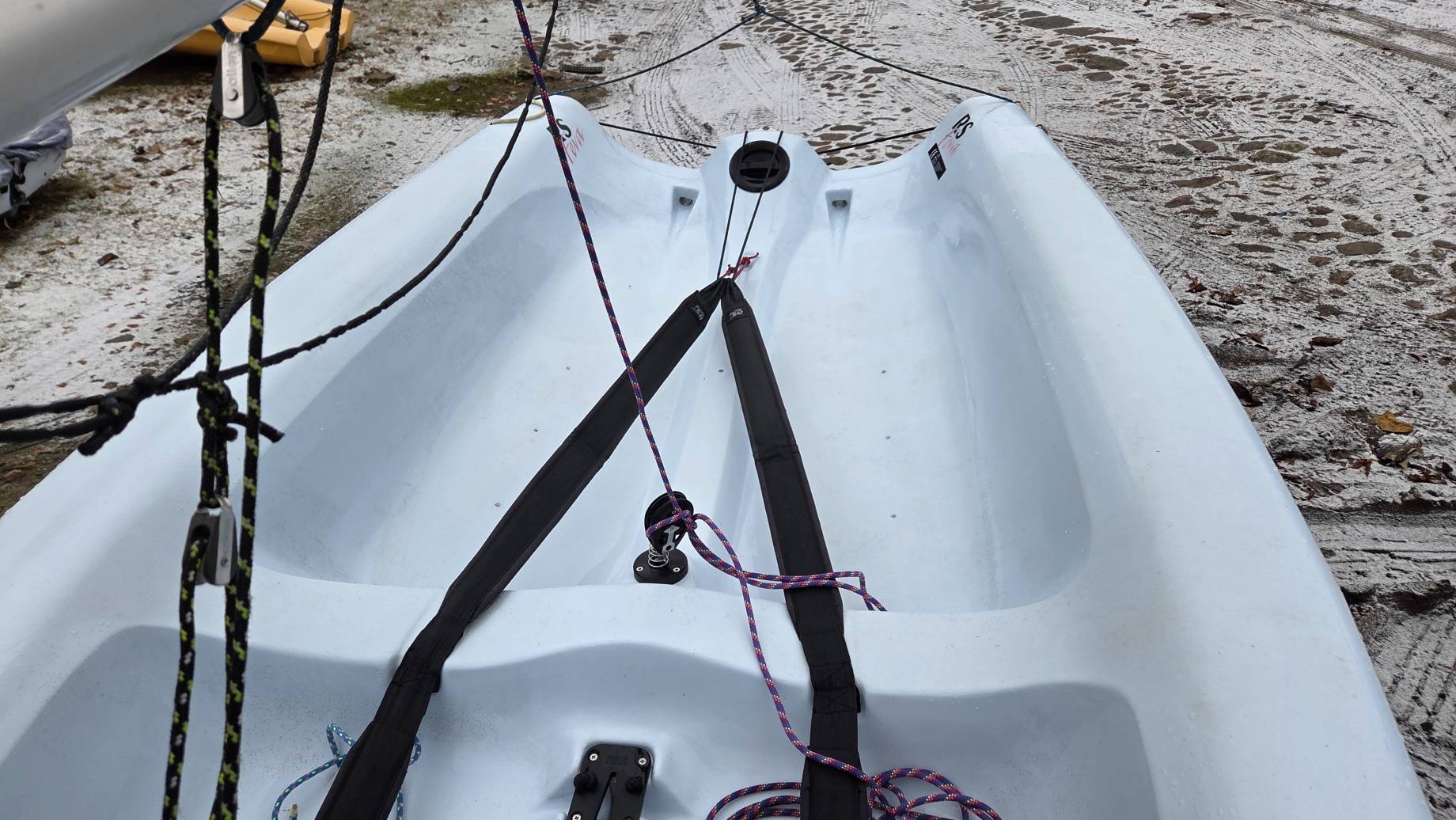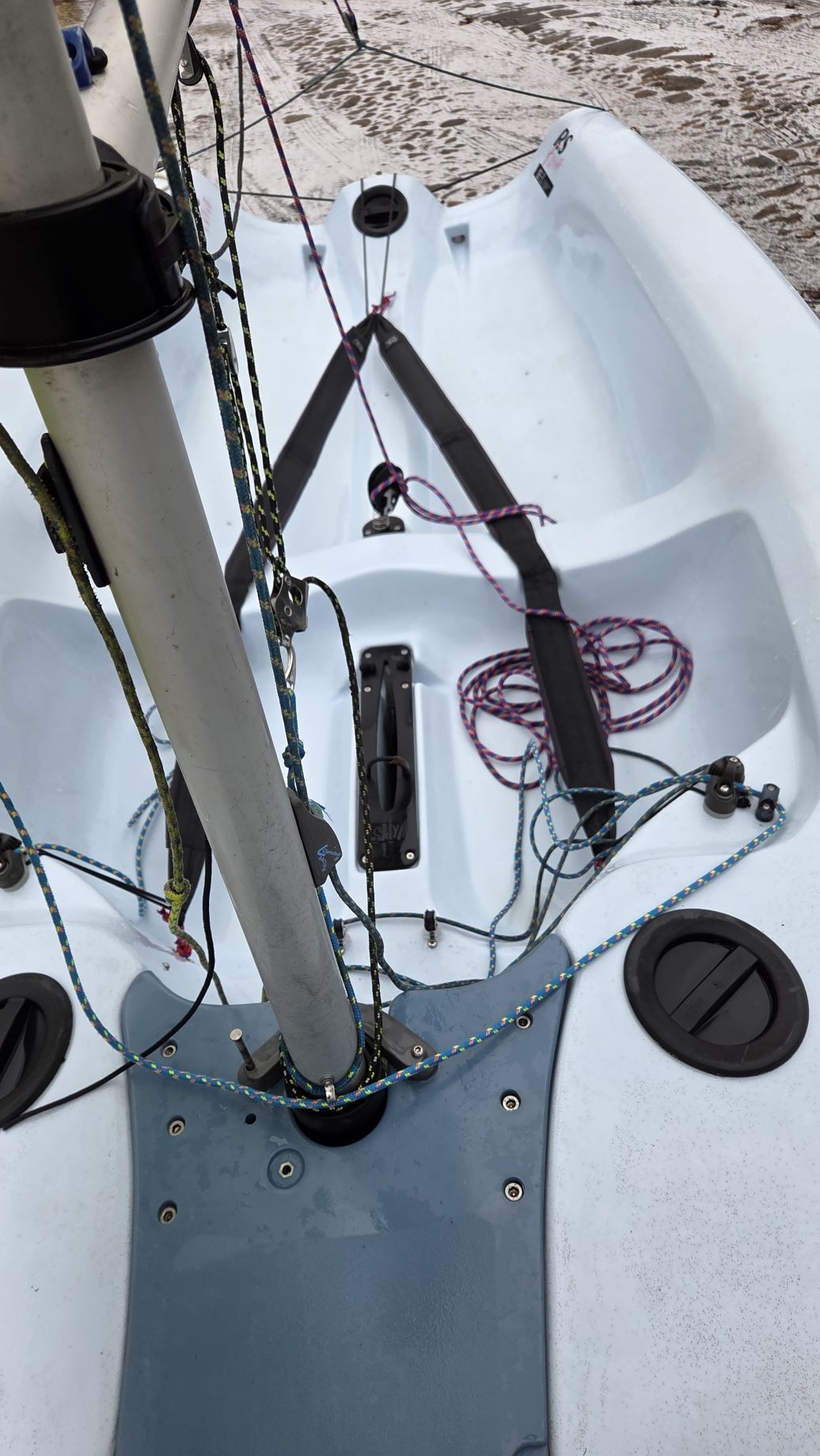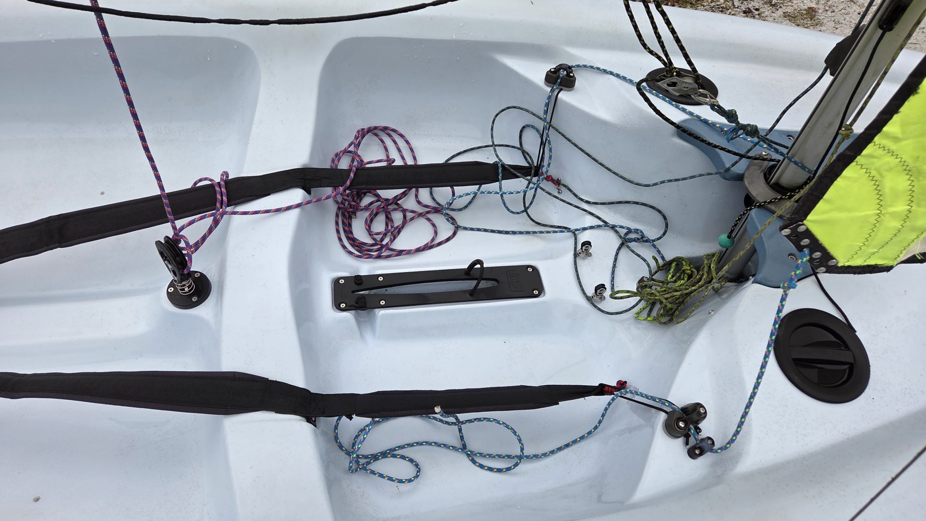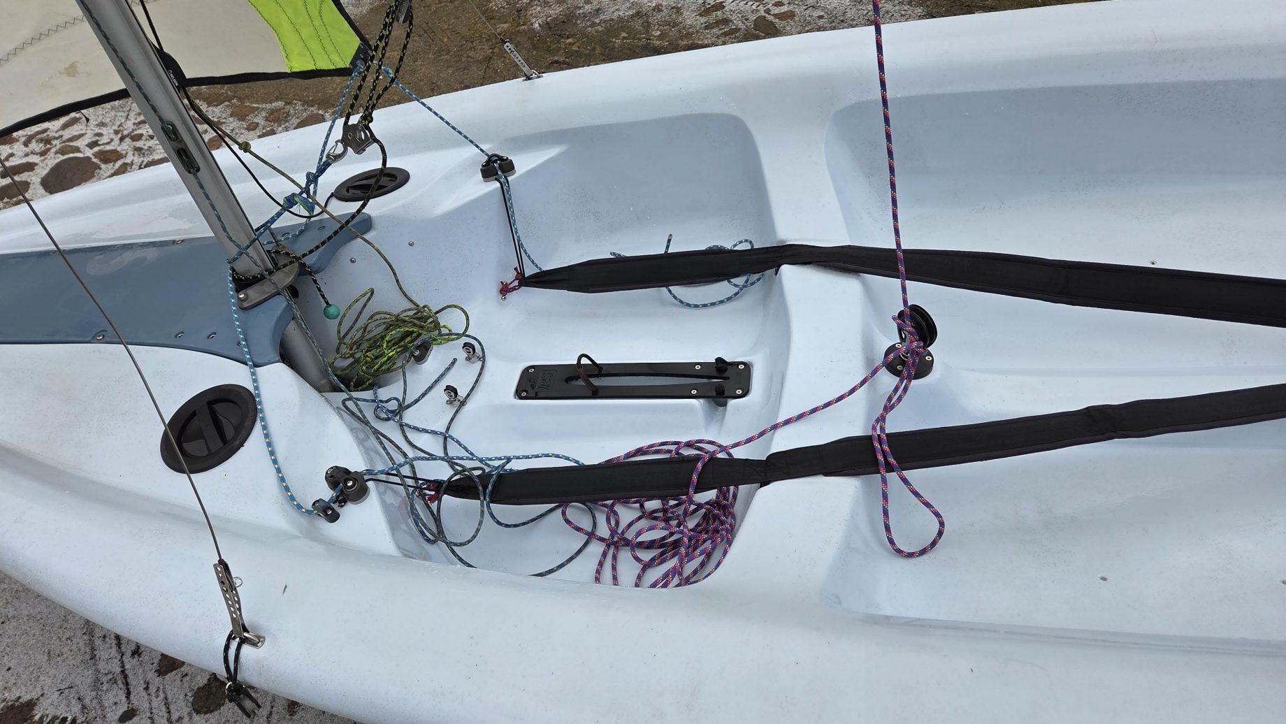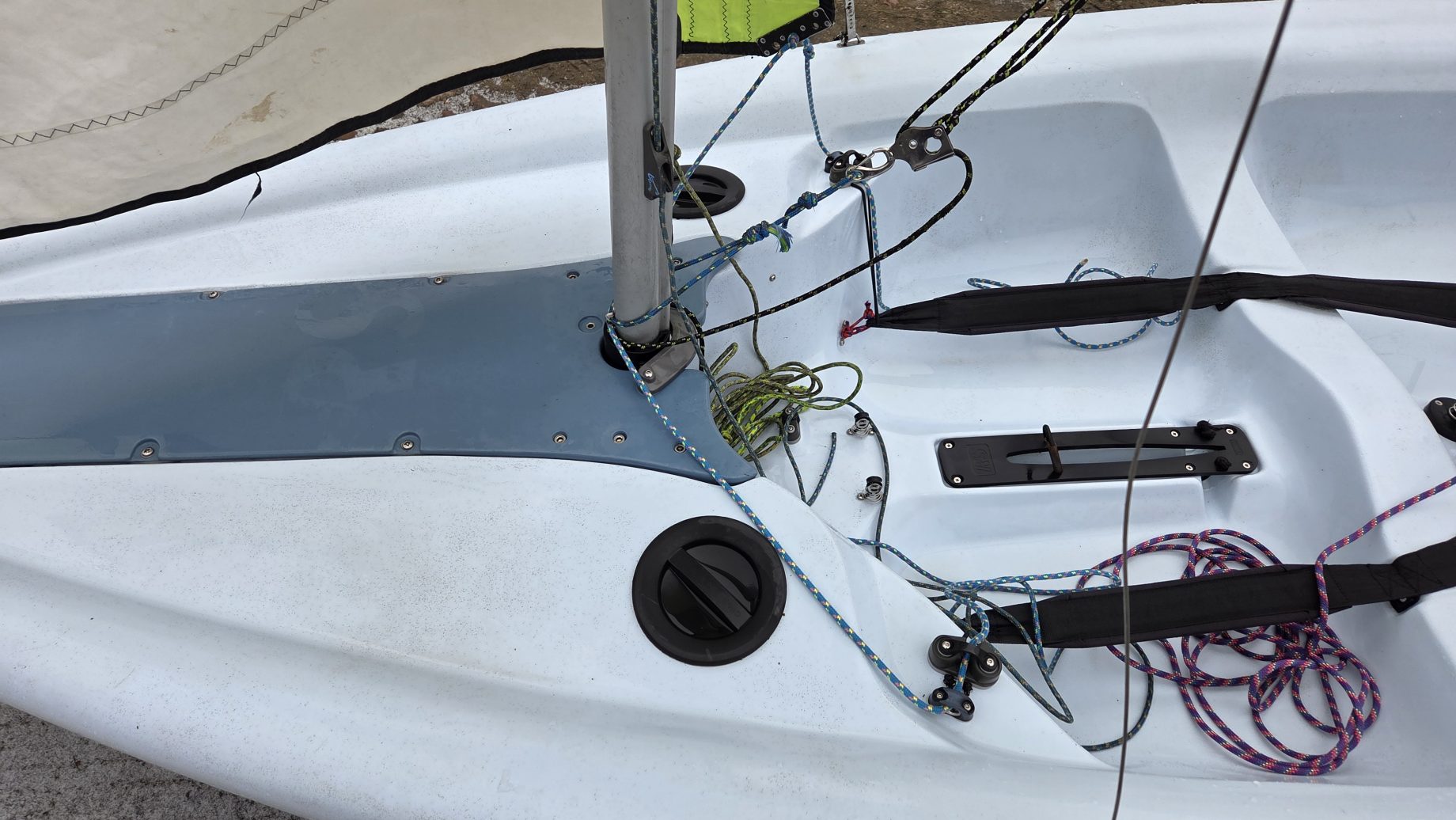 W komplecie dakronowy grot (5,5m2) + fok (2,1m2) oraz genaker (7m2). Możliwość zakupu z grotem mylarowym.