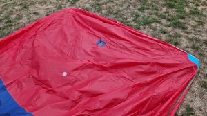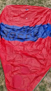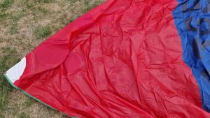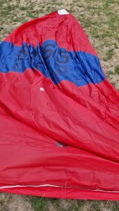 Używany żagiel spinaker Hyde-a widoczny na zdjęciach.