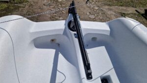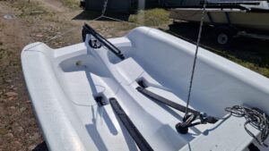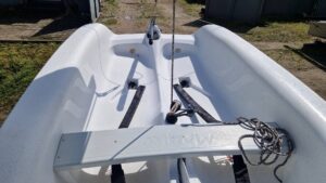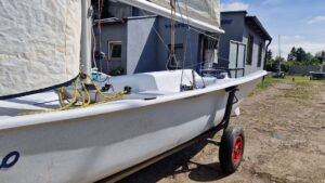 W komplecie oryginalny wózek slipowy oraz pokrowiec na łódź.