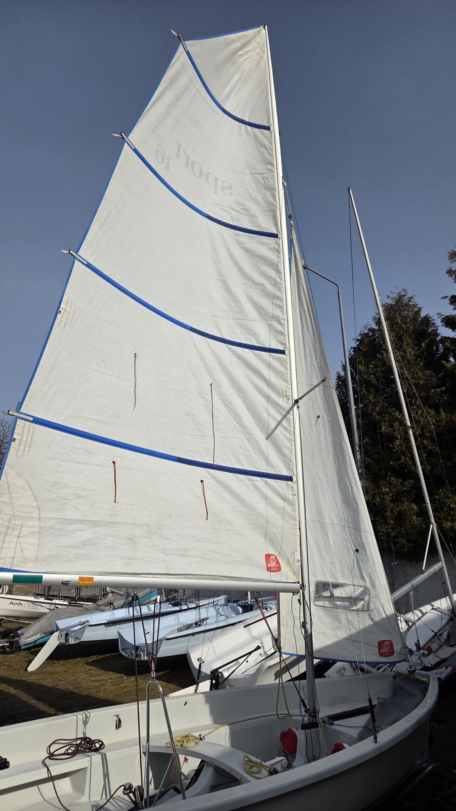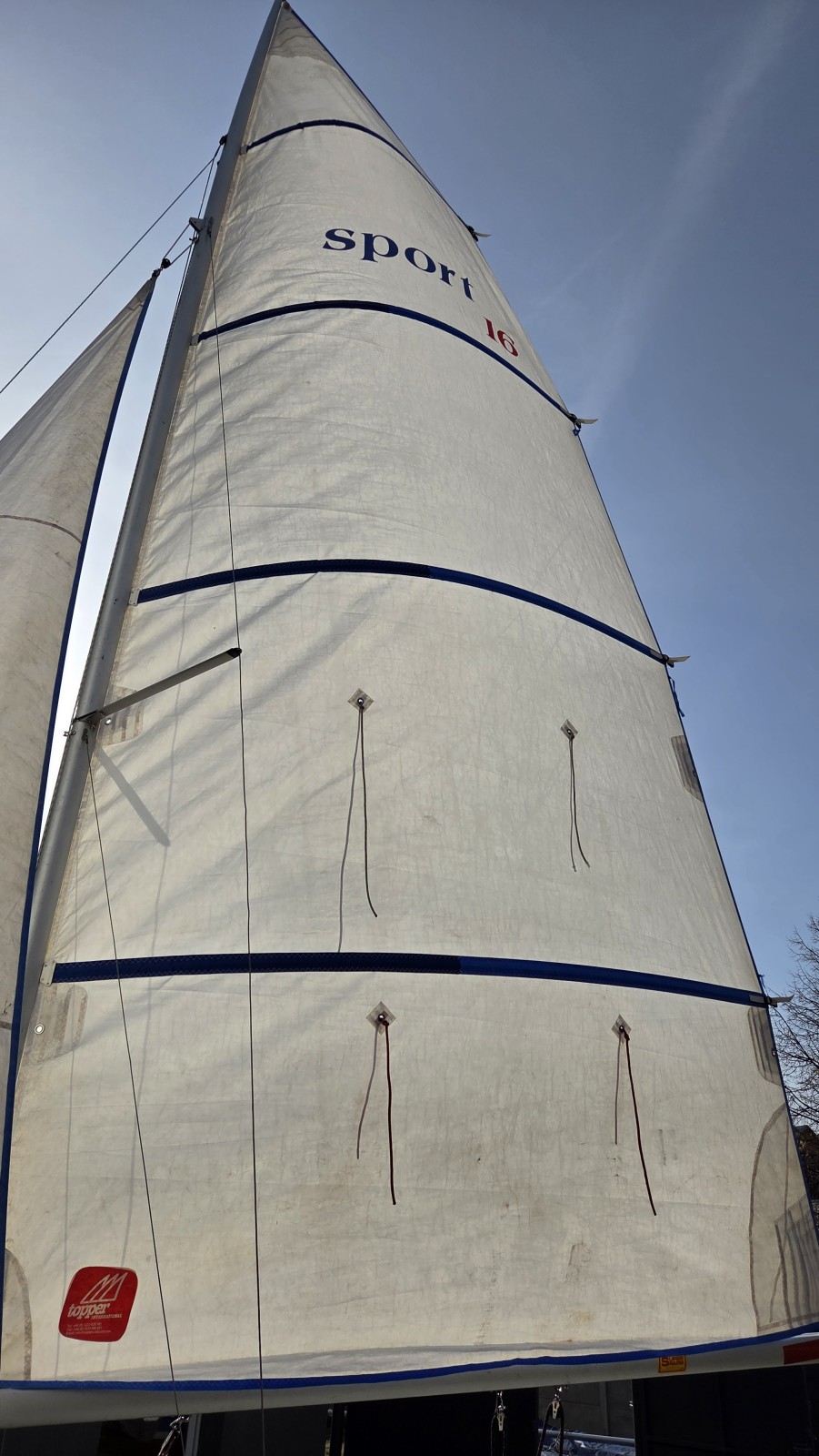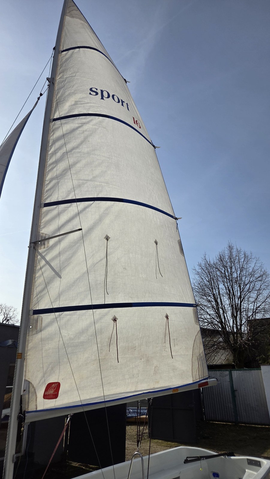 W komplecie dakronowy grot + fok (13,85m2m2) plus genaker.